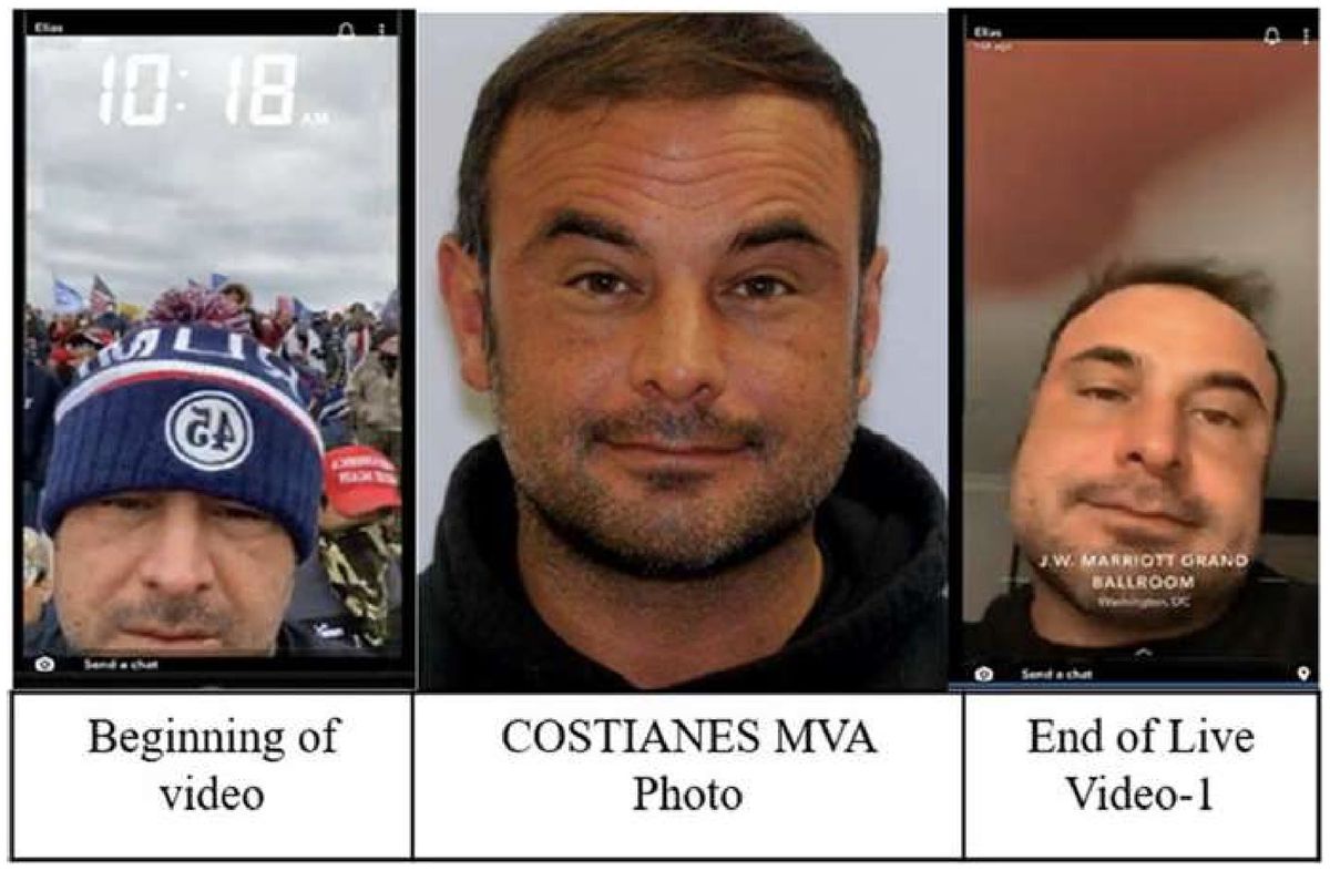 A Baltimore County man was federally indicted Wednesday for his alleged participation in the U.S. Capitol insurrection. Elias Costianes, 42, of Nottingham faces three charges, including obstructing an official proceeding, entering and remaining on a restricted building or grounds with the intent to impede or disrupt government businesses, and willfully engaging in disorderly conduct in any of the Capitol buildings with the intent to impede or disturb. According to the statement of facts, a member of the public submitted a tip to the FBI tip website and identified Costianes through his Snapchat account and said he posted two videos of his alleged participation in the insurrection. The individual requested to have their identity protected. Investigators analyzed the Snapchat videos, Costianes’ driver’s license photo, as well as images captured on U.S. Senate cameras. Elias Costianes, 42, was indicted Wednesday for his alleged participation in the Capitol insurrection. Authorities said he participated in the obstruction of congressional proceedings and unlawfully entered the U.S. Capitol on Jan. 6. Photo taken from federal complaint (photo taken from Federal complaint) The Snapchat video showed Costianes outside the Capitol, authorities said, where he said, “Holy s—, they broke into the Capitol.” He then allegedly said, “Let’s…