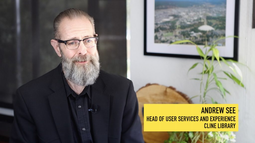 Did you know you can rent cameras, projectors, textbooks and more at the Cline Library? Andrew See, head of user services and experience at Cline Library, shares a just few of the library’s offerings. Can he fit it in a minute?
