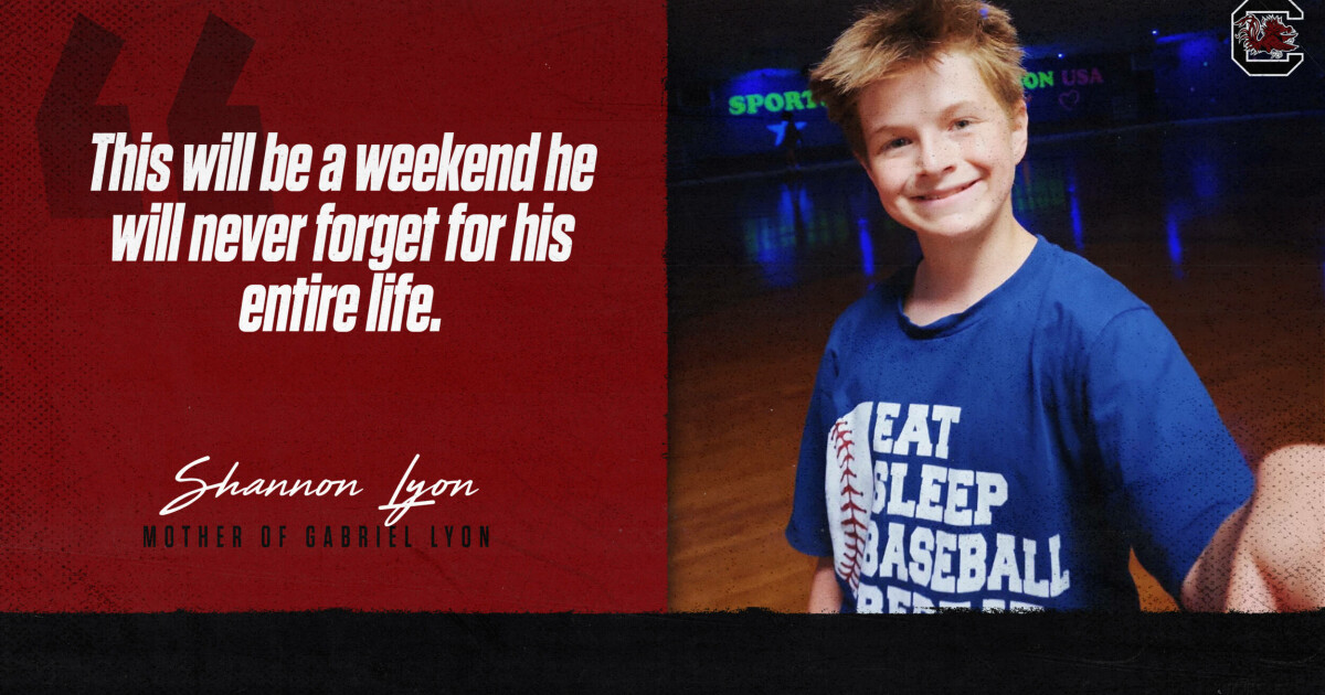 South Carolina’s Founders Park became a Field of Dreams for a local youngster this weekend. 12-year-old Gabriel Lyon, who lives with autism, is a big Gamecock baseball fan from Lexington, S.C., and he was given opportunity to live his dream of being a part of the team thanks to the efforts coordinated by national nonprofit Dream On 3 and the University of South Carolina Collegiate Dream Team (CDT) — a student-led group on campus supported by national CDT sponsor Volvo Construction Equipment. “He loves baseball, and he loves the Gamecocks,” said Gabriel’s mother, Shannon Lyon. “Baseball is his happy place. His dream is to be a professional baseball player. We’ve taken him to games before, and he knows all the players. He recognizes the pitches. He plays baseball in the rec league. He’s a lefty, so he’s first baseman and a pitcher. He plays very well! “We’ve worked very hard to get him to where he is able to go to a mainstream school.” “We work with colleges throughout the U.S.,” said Mandie Condie director of Program and Donor Engagement for Dream On 3. “We have students and student-athletes on campuses who help plan this type of weekend. We have
