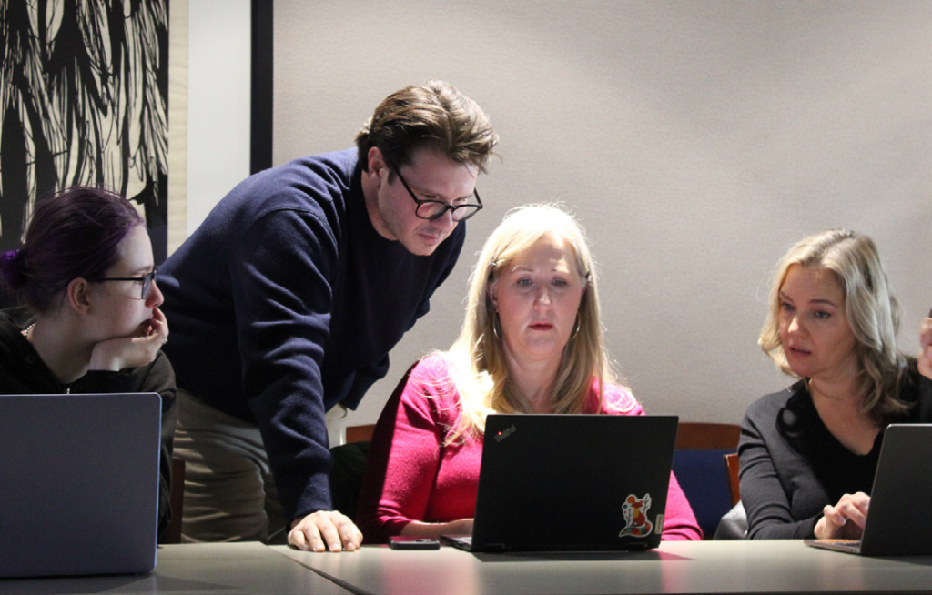 Doane alum Nick Kouma helps workshop attendees navigate LinkedIn. Photo by Mackenzie Pike | The Doane Owl On Thursday, Jan. 28, Doane alum Nick Kouma returned to host a workshop centered around the networking and employment site, LinkedIn. Kouma, who has over 500 connections and more than 10,000 followers, shared his expertise on how to build a strong profile, network efficiently and build a strong brand. To begin, Kouma spoke highly of LinkedIn as a way to connect with others. He finds it to be a place where one can be their authentic self. Kouma acknowledged that his mental health advocacy might alienate some of his audience, but especially as a man in the tech industry, such conversations are important to him. Thus, his first main point is setting intention and building your content “why.” He explains that posts on LinkedIn should operate like a round-table discussion, not putting a letter in the mail. “If you aren’t thinking about your message anymore, why should others?” said Kouma. To encourage engagement, he suggested creating posts that invite responses. One student in the audience, senior Violet Ahrens, applied this advice by crafting a post that reflected on their own “why” statement and prompted