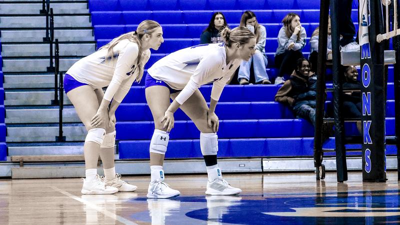 STANDISH, Maine – Saint Joseph’s College (10-9, 6-0 GNAC) swept a Great Northeast Athletic Conference (GNAC) women’s volleyball tri-match with Rivier University (10-10, 5-1 GNAC) and Norwich University (1-15, 0-7 GNAC) on Mike McDevitt Court at the Harold Alfond Center on Saturday. Saint Joseph’s def. Rivier, 3-1 (25-21, 15-25, 25-23, 26-24) Saint Joseph’s opened with a 25-21 win in the first set, sparked by back-to-back kills from Victoria Briones (El Paso, Texas) to take a 9-8 lead the Monks never relinquished. Tied 18-18 late, SJC closed on a 7-3 run to secure the frame. Rivier answered in the second, jumping out 6-1 and never trailing. The Monks pulled within 15-13 after kills from Kylie Giakoumis (Middletown, N.Y.), Nadia Sixto (Chattanooga, Tenn.), and Greta Mackintosh (Plymouth, Mass.), but the Raiders regrouped for a 10-2 finish to even the match. The third and fourth sets were tightly contested, with 17 ties and 10 lead changes combined. SJC eked out a 25-23 win in the third on consecutive Raider errors, then withstood a late Rivier surge in the fourth. After the visitors erased a 22-15 deficit to lead 23-22, Sixto, Maddie Garrett (Euless, Texas), and Giakoumis delivered clutch kills and the Raiders committed