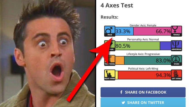 29 December 2020, 14:22 A brand new IDRlabs quiz reveals how left-wing, progressive, normal, male and female you really are. A new quiz is breaking the internet. The 4 axes test tells you exactly where you sit on the axes which determine who you are.Every week a new test goes…Read More