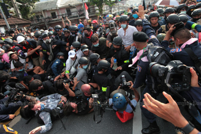 Police want to shut down four media outlets and a Facebook page run by protesters, on grounds their content constitutes a threat to national security.