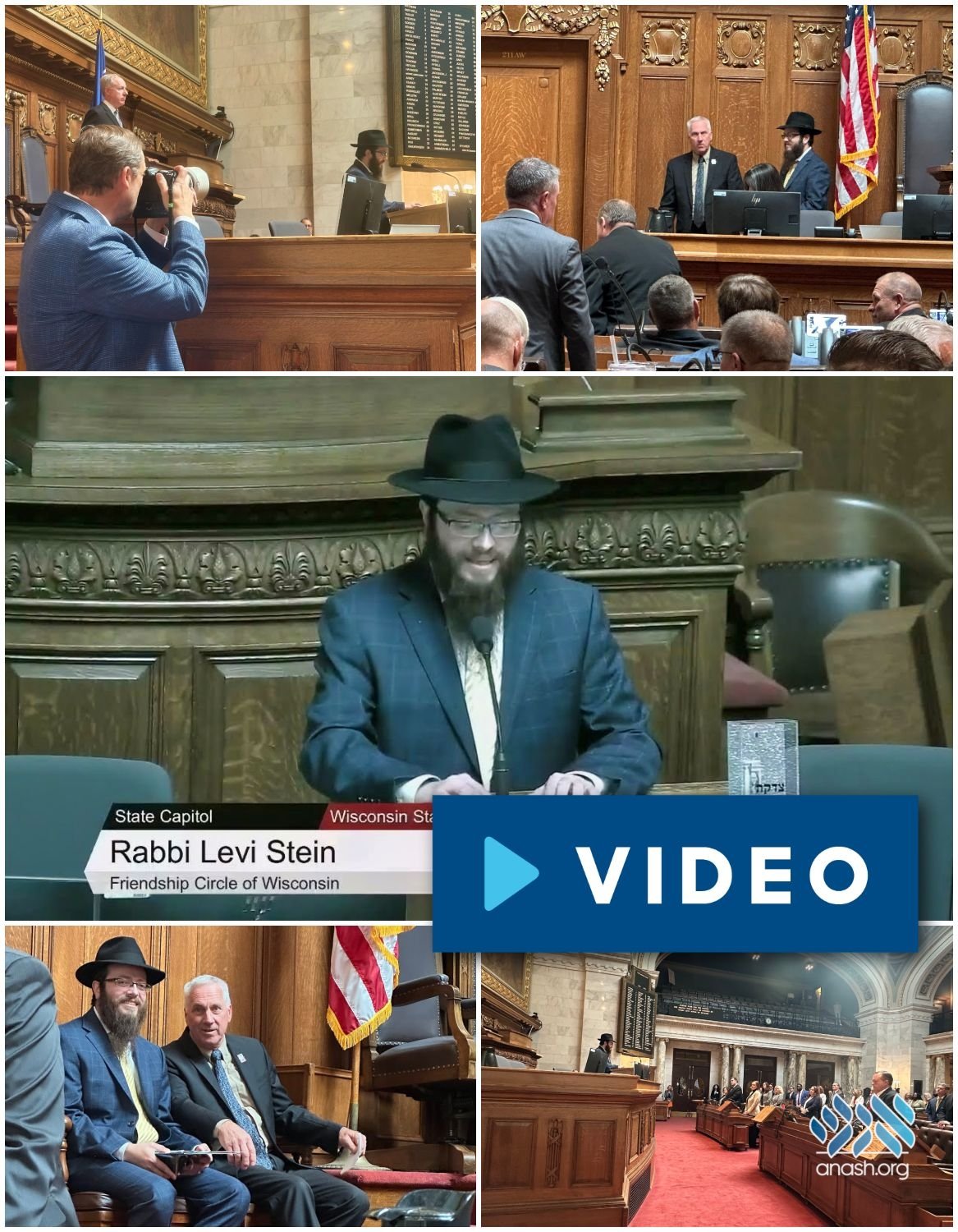 Rabbi Levi Stein, Shliach to Bayside, Wisconsin, and director of the Friendship Circle of Wisconsin, was honored to deliver the invocation prayer at the Wisconsin State Assembly this past Thursday, September 11, at the State Capitol in Madison. By Anash.org reporter Rabbi Levi Stein, Shliach to Bayside, Wisconsin, and director of the Friendship Circle of Wisconsin, was honored to deliver the invocation prayer at the Wisconsin State Assembly this past Thursday, September 11, at the State Capitol in Madison. Representative Kenoto introduced Rabbi Stein as the president and CEO of the Friendship Circle of Wisconsin and as someone dedicated to the well-being of all people, regardless of background or faith. In his remarks, Rabbi Stein commemorated the lives lost on 9/11 and prayed for the nation’s strength, resilience, and healing. He offered a blessing to the members of the State Assembly, noting their role in fulfilling the sheva mitzvos by establishing just laws. Quoting the Rebbe, he shared that “difference need not lead to division” and that true unity comes from bringing different forces together. To illustrate the impact of simple goodness, he placed a dollar bill in a pushka, stressing how even a small act of kindness can help