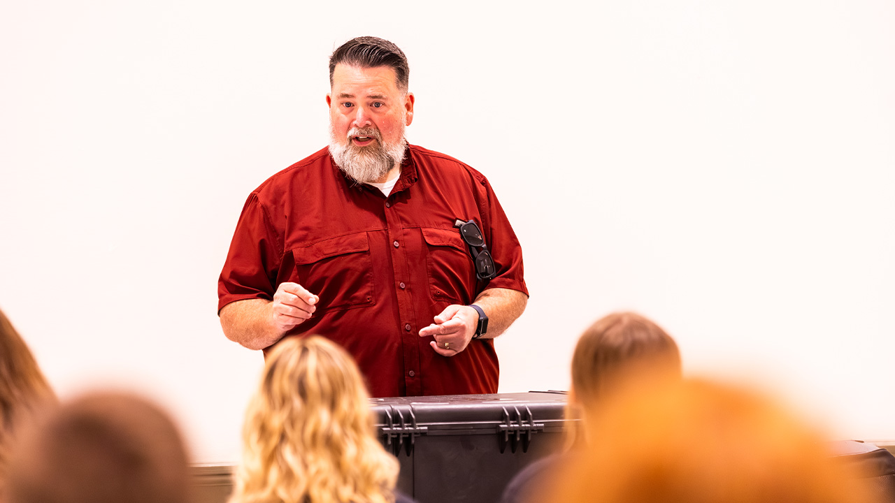 Troy University’s Hall School of Journalism and Communication held its annual J-Day on Tuesday, October 7, hosting 200 high school students from eight high schools across Alabama. Students attended workshops covering broadcast journalism, multimedia journalism, yearbook production and journalism fundamentals, including photography and preparing for college media programs. Haley Hust, a senior from Saint James School in Montgomery, saw J-Day as an opportunity to learn more about the field that she wants to work in. During the first workshop session, she sat at the anchor desk on the TrojanVision set and got to read from the teleprompter.  “I was really nervous at first, but as soon as I started getting into it, it really started to flow,” she shared. “I really want to do that when I get older.” WSFA 12 News reporters, Simon Schuessler and Emma Ellis, are TrojanVision alums and led a workshop on the topic of being new journalists.  “It was a blessing for me to come through the program, and I use the skills I learned in college every day,” said Schuessler. “While I cannot overstate the importance of TROY in my life, what is even more important is continuing our tradition of producing successful journalists—and